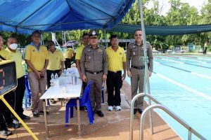 ตรวจความพร้อมและกำชับการปฏิบัติของเจ้าหน้าที่ในการดำเนินการทดสอบการว่ายน้ำ (25เมตร)