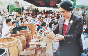 ด้านศิลปาชีพ ในขณะที่พระบาทสมเด็จพระเจ้าอยู่หัว รัชกาลที่9 ทรงริเริ่มก่อตั้งโครงการหลวงต่างๆ สมเด็จพระนางเจ้าสิริกิติ์ พระบรมราชินินาถ พระบรมราชชนนีพันปีหลวง จึงทรงริเริ่มโครงการให้ราษฎรโดยเฉพาะชาวนาในท้องถิ่นชนบททำอาชีพเสริมโดยใช้เวลาว่างจากการทำนาทำไร่มาทำงานศิลปาชีพ จนราษฎรเหล่านั้นมีความรู้ความสามารถในงานผลิต งานศิลปหัตถกรรม จนเป็นที่ยอมรับในประเทศไทยและระดับสากล