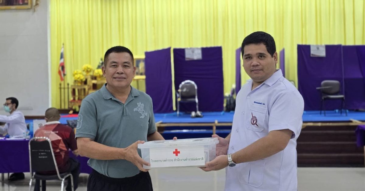 พล.ต.ต.ปรีดา อิ่มเจริญ ผบก.ศฝร.ภ.7 รับมอบยาและเวชภัณฑ์ จากผู้แทนโรงพยาบาลตำรวจ จำนวน 1 ชุด