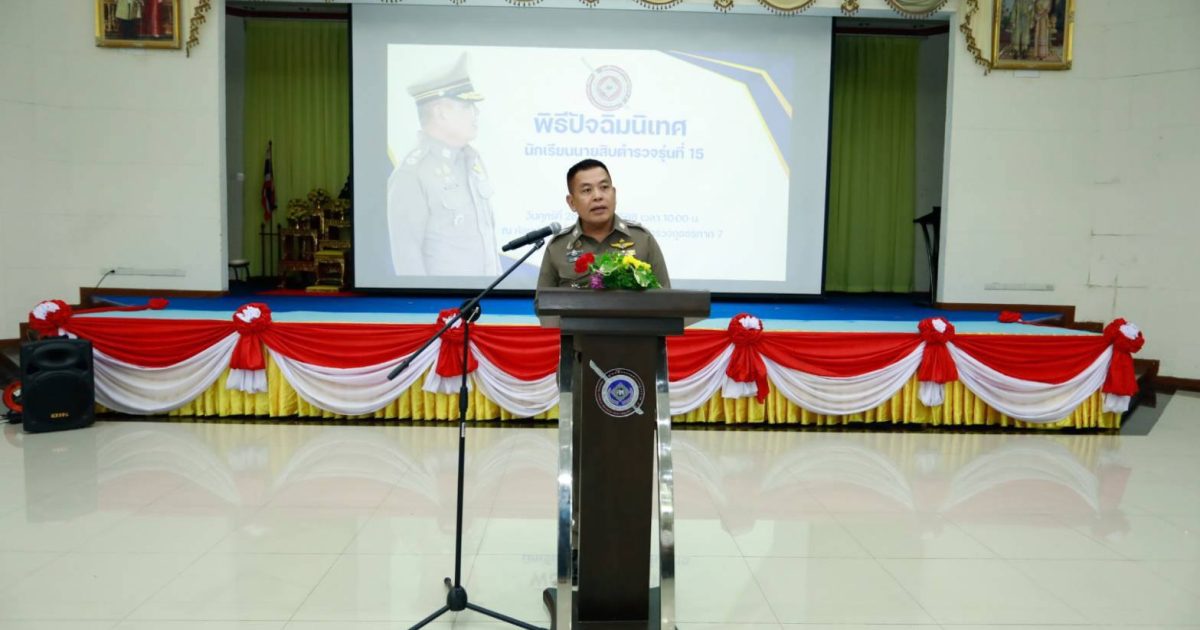 พล.ต.ต.ปรีดา อิ่มเจริญ ผบก.ศฝร.ภ.7 ประธานในพิธี พร้อมด้วย พ.ต.อ.อมรฤทธิ์ คชกูล อจ.(สบ 5) ฯ พ.ต.อ.นุชิต จาละ ผกก.ปค.ฯ และ พ.ต.อ.นิกร ด้วงฉุน ผกก.ฝอ.ฯ เข้าร่วมพิธีปัจฉิมนิเทศ นักเรียนนายสิบตำรวจ รุ่นที่ 15