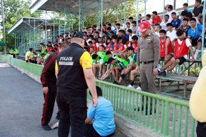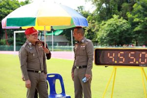 พล.ต.ต.ปรีดา อิ่มเจริญ ผบก.ศฝร.ภ.7 พร้อมด้วย พ.ต.อ.อมรฤทธิ์ คชกูล อจ.(สบ 5) ศฝร.ภ.7, พ.ต.อ.ธนากร สุวรรณศรี รอง ผบก.ศฝร.ภ.7 และ พ.ต.อ.นิกร ด้วงฉุน ผกก.ฝอ.ศฝร.ภ.7 ตรวจความเรียบร้อย การทดสอบภาคความเหมาะสมกับตำแหน่ง นสต.17 (ทดสอบวิ่ง 1,000 เมตร)