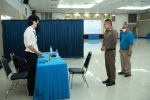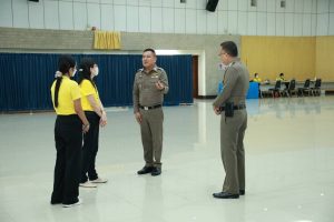 พล.ต.ต.ปรีดา อิ่มเจริญ ผบก.ศฝร.ภ.7 พร้อมด้วย พ.ต.อ.นิกร ด้วงฉุน ผกก.ฝอ.ศฝร.ภ.7 และ พ.ต.ท.รวี สินอาภา สว.บศ.ศฝร.ภ.7 ตรวจความเรียบร้อย การทดสอบภาคความเหมาะสมกับตำแหน่ง นสต.17 (ตรวจร่างกายและทดสอบสุขภาพจิต)