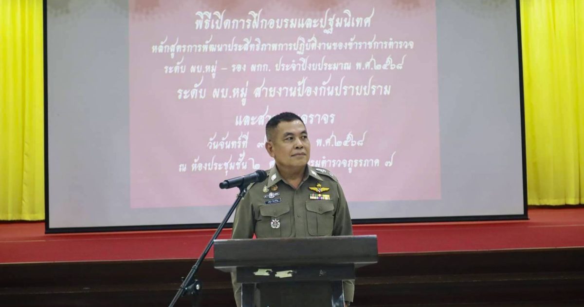 พล.ต.ต.ปรีดา อิ่มเจริญ ผบก.ศฝร.ภ.7 เป็นประธานในพิธีเปิดการฝึกอบรมหลักสูตรพัฒนาประสิทธิภาพการปฏิบัติงานของข้าราชการตำรวจ ระดับ ผบ.หมู่ สายงานป้องกันปราบปราม และสายงานจราจร ประจำปีงบประมาณ พ.ศ 2568