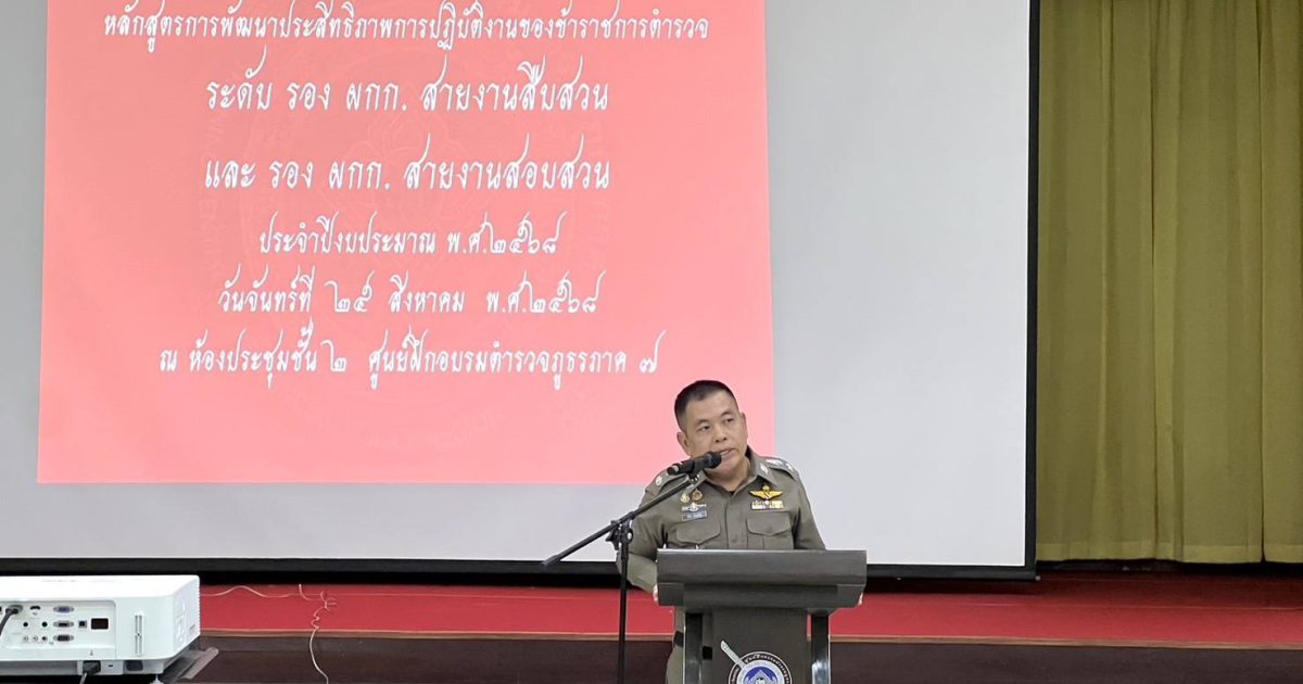 พล.ต.ต.ปรีดา อิ่มเจริญ ผบก.ศฝร.ภ.7 เป็นประธานในพิธีเปิดการฝึกอบรมหลักสูตรพัฒนาประสิทธิภาพการปฏิบัติงานของข้าราชการตำรวจ ระดับ รอง ผกก.สายงานสืบสวน และสายงานสอบสวน ประจำปีงบประมาณ 2568