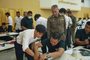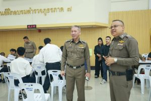 ร่วมตรวจการปฏิบัติหน้าที่ของข้าราชการตำรวจประจำจุดการรับรายงานตัว รับเอกสารหลักฐาน ตรวจหลักฐาน สืบความประพฤติ ตรวจสอบคุณวุฒิ พิมพ์ลายนิ้วมือ และทดสอบความเหมาะสมกับตำแหน่งทดสอบสมรรถภาพร่างกาย ในการสอบคัดเลือกบุคคลภายนอก ผู้มีวุฒิประกาศนียบัตร มัธยมศึกษาตอนปลาย (ม.6) หรือประกาศนียบัตรวิชาชีพ (ปวช.) หรือเทียบเท่าเพื่อบรรจุเป็นนักเรียนนายสิบตำรวจ ประจำปีงบประมาณ พ.ศ. 2568 พร้อมทั้งให้กำลังใจแก่ผู้ไม่ผ่านการคัดเลือกในด้านต่างๆ ณ ศฝร.ภ.7 อ.เมืองนครปฐม จว.นครปฐม