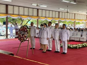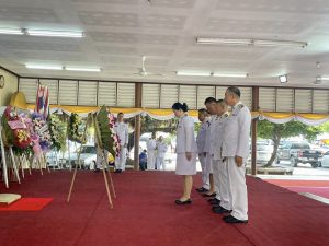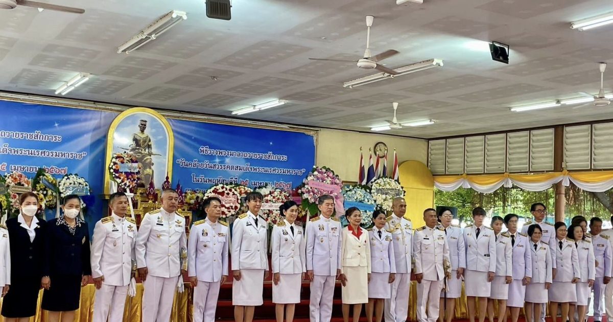 พ.ต.อ.หญิงนงนุช พุทธคุณรักษา อจ.(สบ4) กอจ.ศฝร.ภ.7 พร้อมข้าราชการตำรวจชั้นสัญญาบัตรเข้าร่วมพิธีวางพวงมาลาถวายราชสักการะ”วันคล้ายวันสวรรคตสมเด็จพระนเรศวรมหาราช”