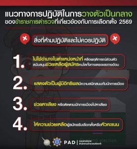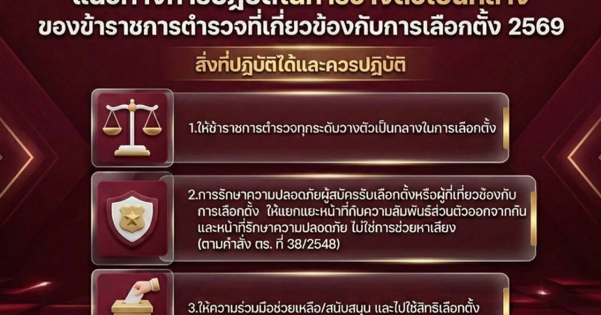แนวทางการปฏิบัติในการวางตัวเป็นกลางของข้าราชการตำรวจที่เกี่ยวข้องกับการเลือกตั้ง 2569
