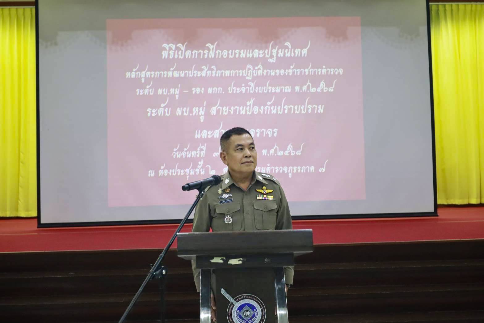 พล.ต.ต.ปรีดา อิ่มเจริญ ผบก.ศฝร.ภ.7 เป็นประธานในพิธีเปิดการฝึกอบรมหลักสูตรพัฒนาประสิทธิภาพการปฏิบัติงานของข้าราชการตำรวจ ฯ